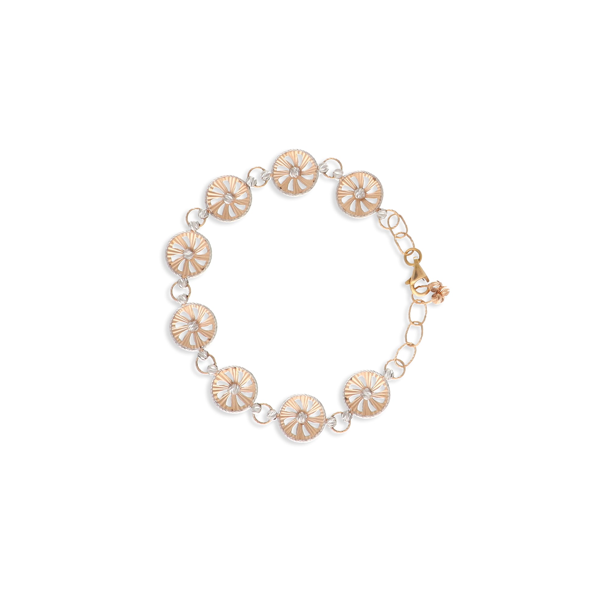 Inspired by the warmth of the sun, the Solar Bloom Bracelet features delicately cut gold medallions that resemble blooming sunbursts. Lightweight yet radiant, this timeless piece is perfect for everyday elegance or a subtle festive sparkle.