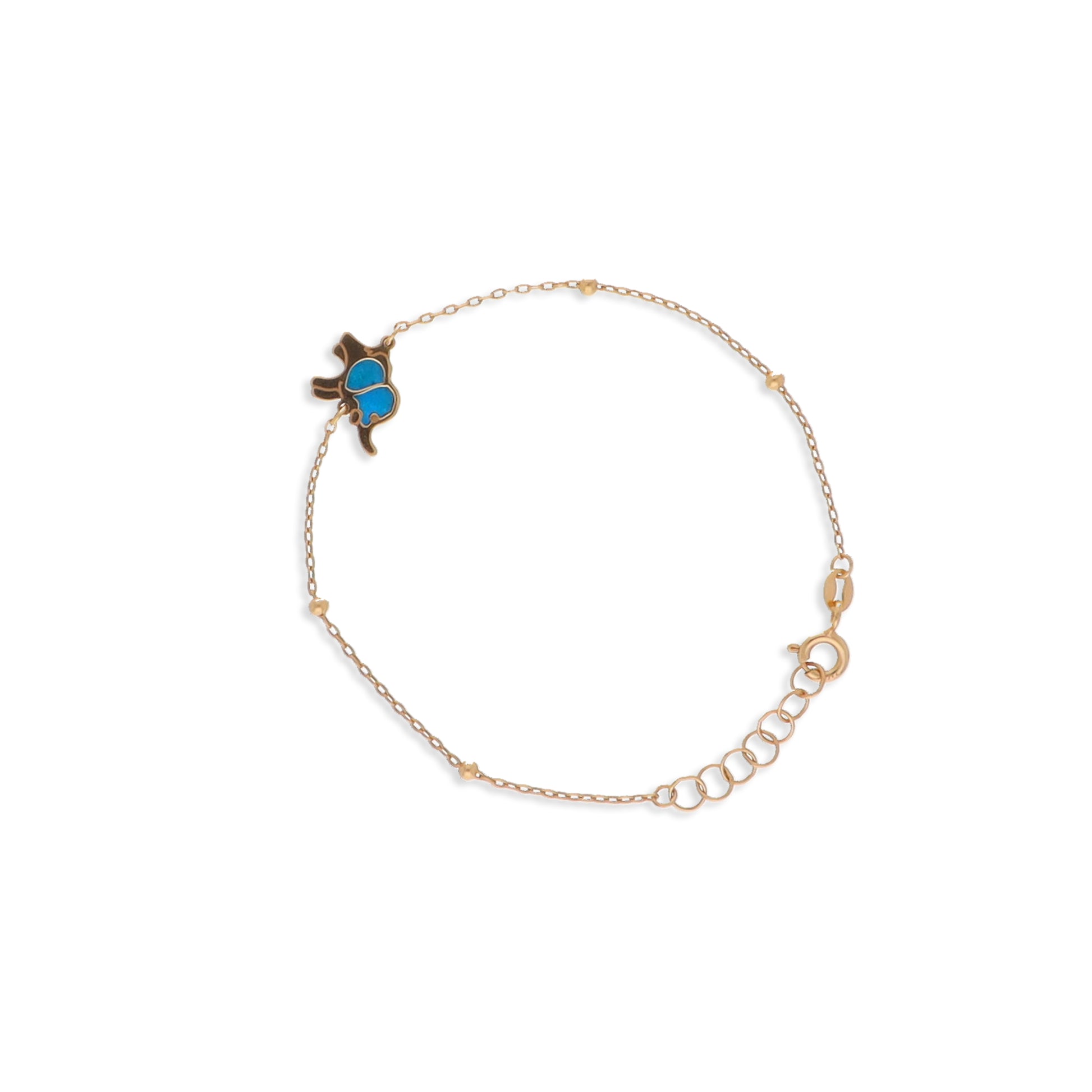 Celebrate strength and sweetness with this adorable elephant bracelet, crafted in gold with a cheerful blue enamel body. A symbol of wisdom, luck, and playfulness — this piece is perfect for your little one’s everyday adventures.
