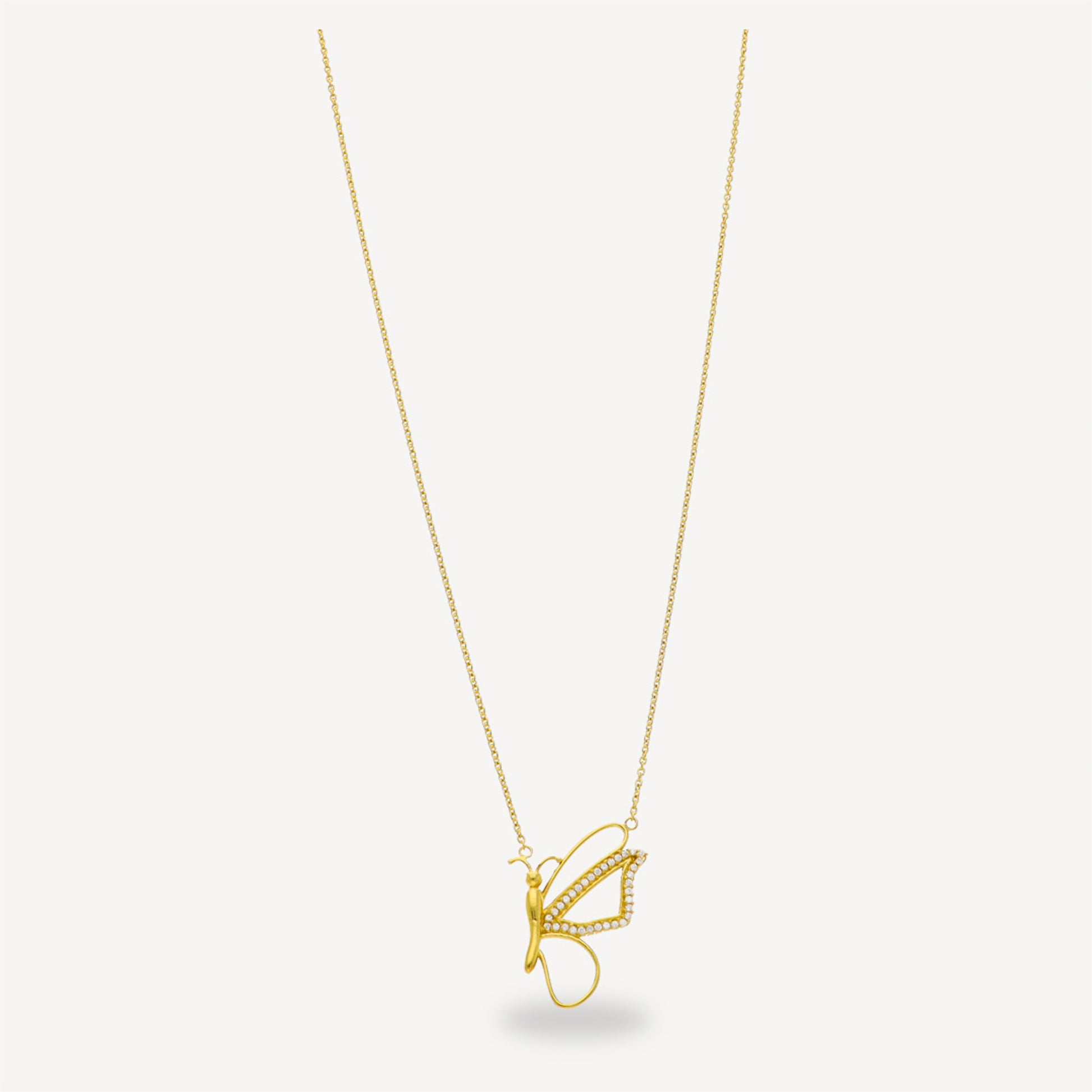 Celebrate freedom and transformation with the Whispering Wings Necklace — a graceful butterfly silhouette crafted in gold, with a touch of sparkle on one wing. This airy, minimal design adds just the right hint of movement and magic to your everyday look.Whether worn solo or layered, it's a timeless reminder of beauty in motion.